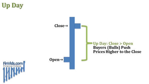 If the close is higher than the open, then the bar is called an "up day" or Bullish Bar.