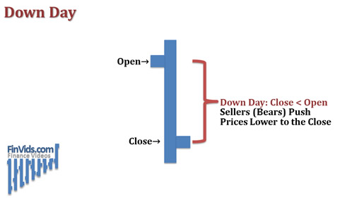If the close is less than the open, then the day is summarized as a "down day" or Bearish Bar.