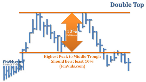 Double tops look like the letter "M". A double top is formed when a new high is created (a peak) and is followed by a retracement downward; this middle part of the "M" is called the trough.