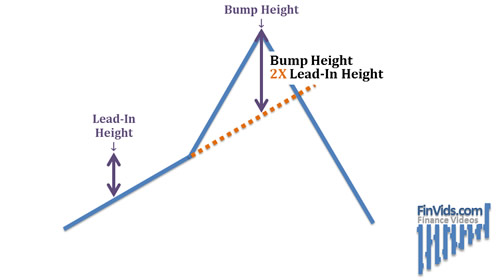 Do note that the height of the bump must be at least twice the height of the largest ranged price bar (the largest ranged price bar should be greater than $1 in height) in the first part of the 30 to 45 degree uptrend (Bulkowski, 2005).