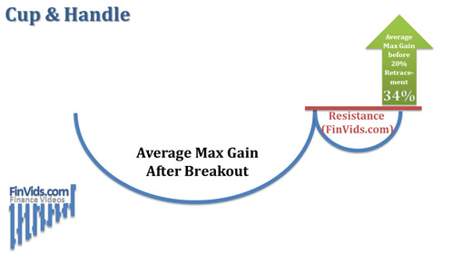 Bulkowski's (2005) research suggests that the averaged maximum rise after the breakout of the cup and handle pattern is 34%. Bulkowski (2008) also gives price targets for the cup and handle breakout: